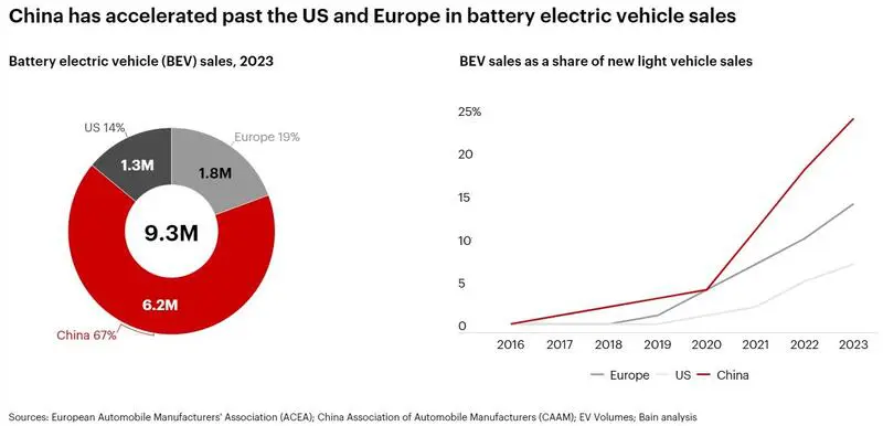 China se ha consolidado como el principal mercado de vehículos eléctricos de batería ante la caída de la demanda en Europa y Estados Unidos. Un estudio de Bain & Company revela que los fabricantes chinos están expandiéndose en los diferentes mercados del Viejo Continente y México, presionando a los fabricantes occidentales.