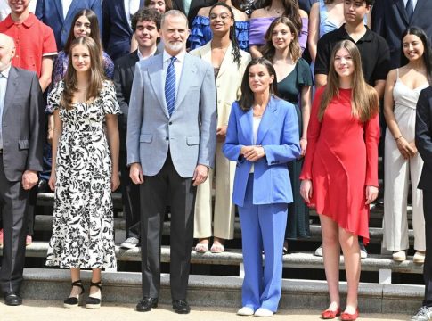 En el encuentro con el Patronato de la Fundación Comité Español de los Colegios del Mundo Unido, los Reyes de España, Don Felipe VI y Doña Letizia, acompañados por sus hijas, la Princesa Leonor y la Infanta Sofía, han destacado por su presencia y estilo impecable.