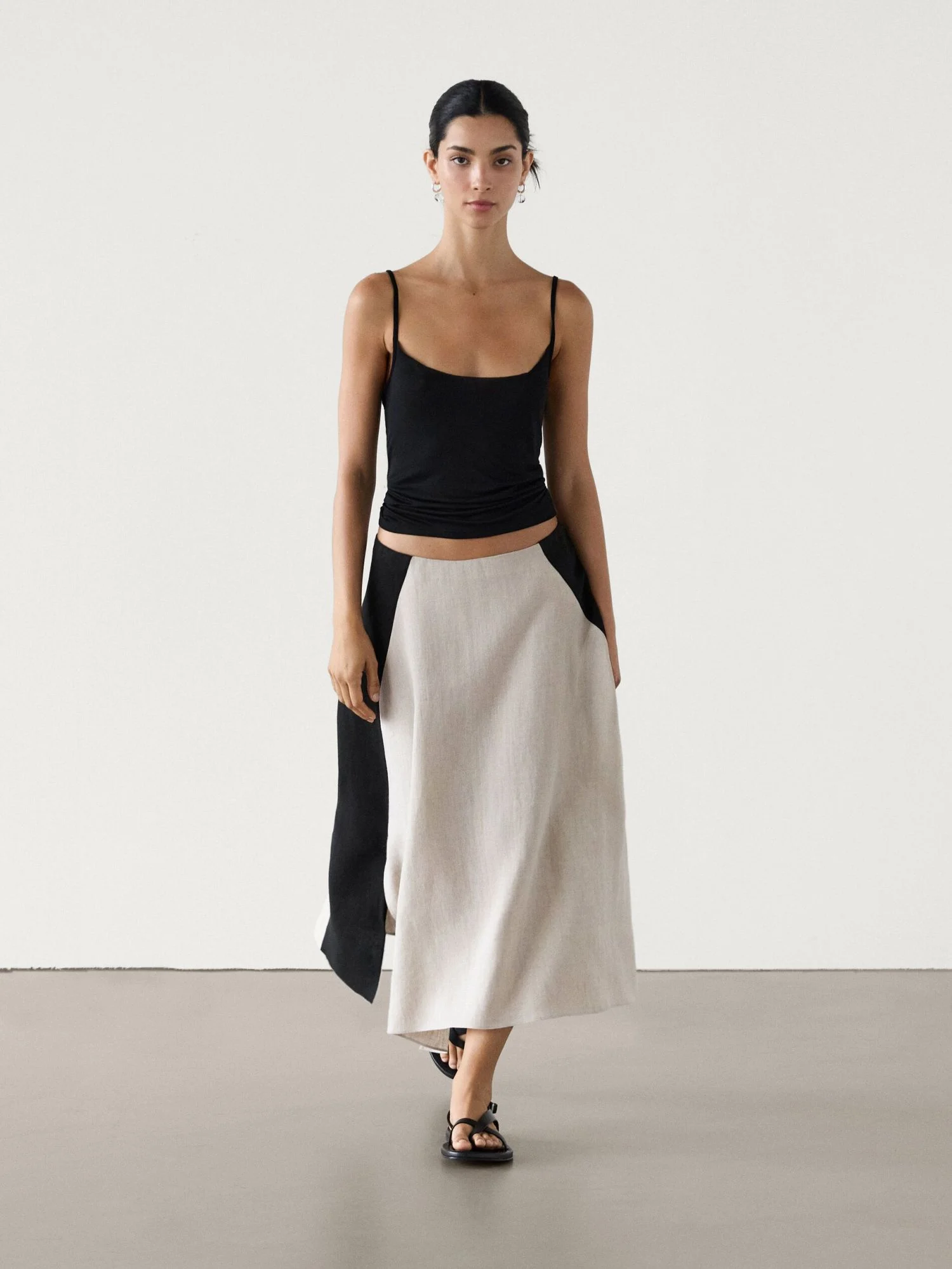 6FALDA MIDI EVASÉ CONTRASTE LINO