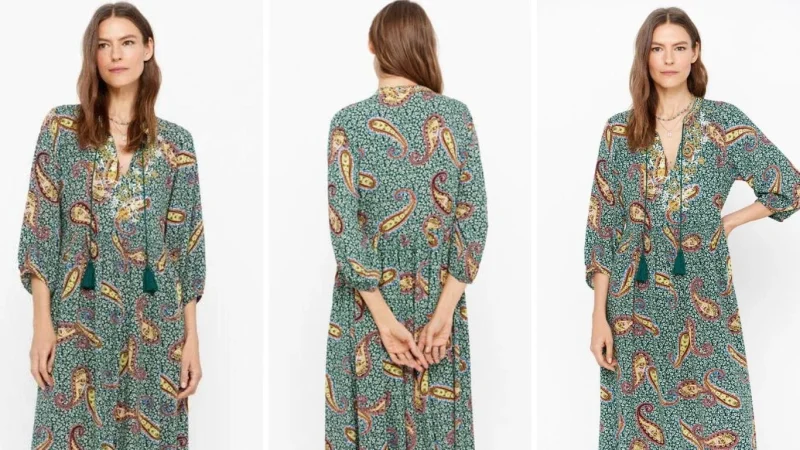 Desde que vimos el vestido que Sara Carbonero compartió en sus redes sociales estilo boho, que todas queremos el mismo. Bueno, Cortefiel tiene uno muy similar, si bien no es el mismo, su estampado, escote y largo es casi tan parecido como el de la presentadora. Este vestido tiene un estampado de escote redondo y en pico rematado con borlas a tono. El mismo tiene el detalle de dos correas en el escote que sirve para atar en el caso de no querer llevarlo abierto.
