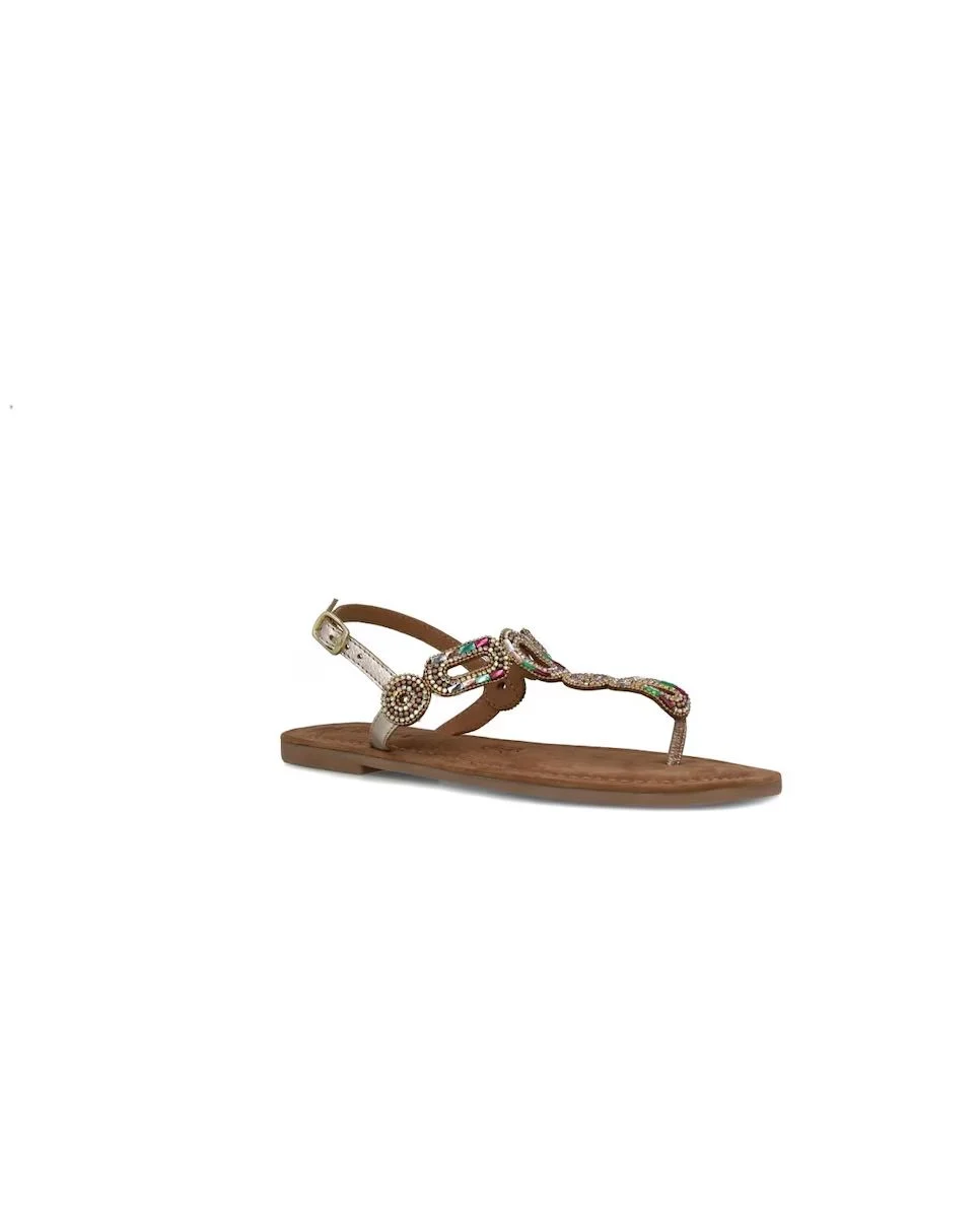 4Sandalias planas de mujer de dedo con pedrería en la tira de Menbur