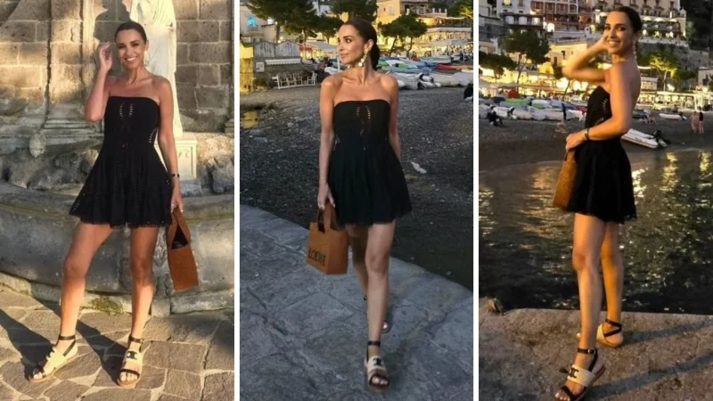 Desde sus redes sociales la actriz nos compartió un vestido mini negro que fue una completa locura la momento en que lo vimos. Posando desde Positano, Italia, Paula Echevarría llevó un vestido total black con volados y troquelados en toda la falda. Con un pequeño fruncido en al parte del escote que le daba un toque elegante y romántico a su estilo boho.