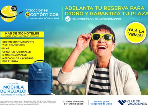 Para esta temporada, Club de Vacaciones ha lanzado la reserva anticipada para su programa de Vacaciones Económicas, que estará disponible desde el 22 de julio. Esta opción permite a los viajeros Silver asegurar su viaje con antelación, eligiendo el destino con la mayor facilidad y evitando listas de espera, todo ello sin necesidad de acreditación. Además, y solo hasta el 31 de julio, los clientes que formalicen su reserva del programa Vacaciones Económicas recibirán una mochila de Club de Vacaciones de regalo.