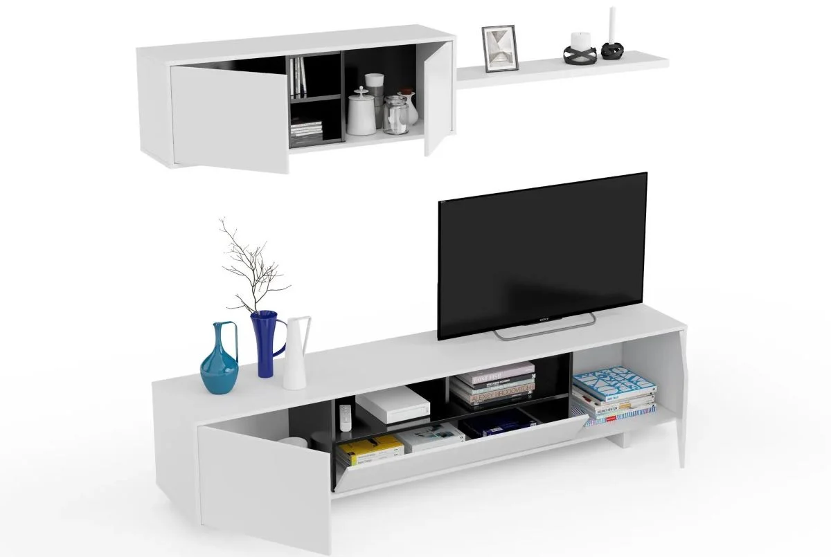Este conjunto incluye varios elementos pensados para ofrecer una solución integral de almacenamiento y decoración. Cada componente está diseñado para complementar los demás, creando una armonía visual que realza cualquier salón.