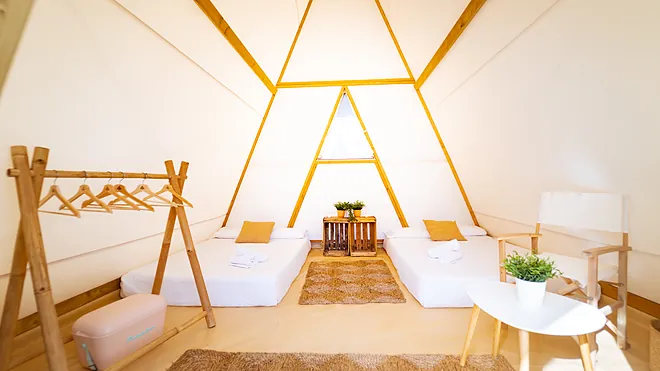 Además de encontrarse en entornos naturales privilegiados, las tiendas de campaña de campaña de Kampaoh ofrecen una gran ventaja: confort. Con capacidad para hasta seis huéspedes, incluyen camas, sábanas y toallas de baño, mesas y sillas, alfombras, sistema eléctrico e iluminación, mosquiteras, menaje y nevera portátil, también existe la posibilidad de reservar tiendas que incorporan baño propio o pequeñas cabañas con bañera para darse un baño mientras se disfruta de las vistas y hay servicios extra, como supermercado, restaurante, piscina, masajes…