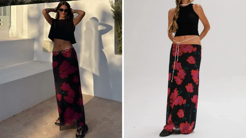 Negra y con flores negras grandes y horas alrededor, así es la falda midi de Susana Bicho que tiene un costo de 64,90 euros en la página de Sumsie’s. La puedes combinar con ojotas altas o simplemente unas sandalias abiertas de tiras para tener los pies frescos y cómodos. Pull&Bear te brindó opciones similares a la falda de la influencer, es solo cuestión de ir, probarse y reventar la tarjeta. Sé tu mejor versión.