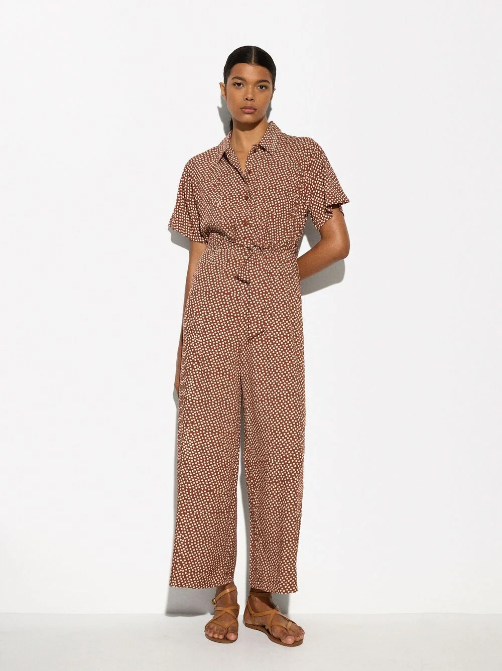 El mono largo fluido de Parfois es una prenda ideal para quienes buscan una combinación de estilo y comodidad a un precio atractivo de 32,99€. Este mono de manga corta cuenta con un elegante cuello de solapa y bolsillos laterales, que añaden un toque práctico sin sacrificar el diseño. Confeccionado en 100% viscosa, ofrece una sensación suave y ligera, perfecta para mantenerte fresca en los días más cálidos. Además, incluye un cinturón del mismo color y tejido, que permite ajustar la cintura para un ajuste personalizado y estilizado.
