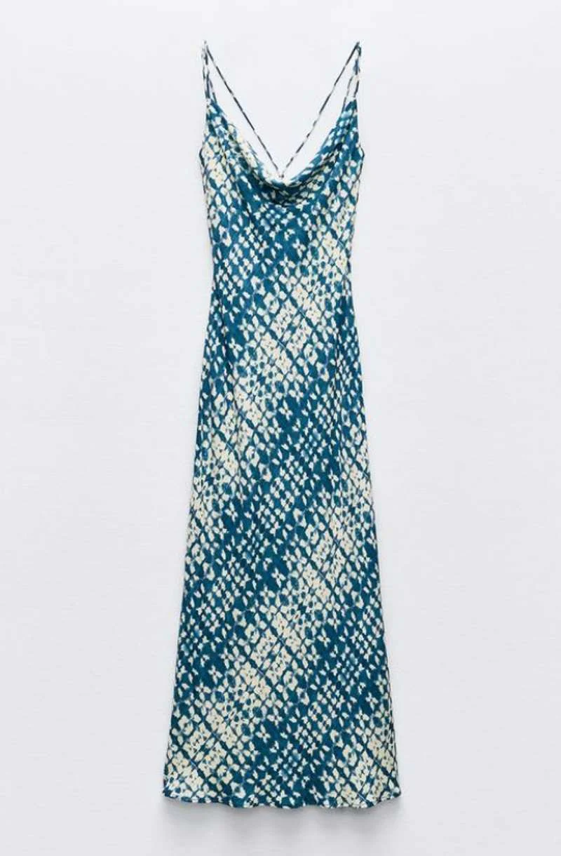 Los vestidos lenceros son sinónimo de frescura y estilo, y el modelo estampado de Zara no es la excepción. Su escote fluido y tirantes finos lo convierten en una prenda extremadamente versátil. Ideal tanto para unas vacaciones en la playa como para una tarde en la ciudad, este vestido se adapta a cualquier tipo de sandalia, permitiéndote crear looks tanto casuales como elegantes. Su tejido ligero y estampado atractivo hacen que sea un imprescindible para tu guardarropa de verano.