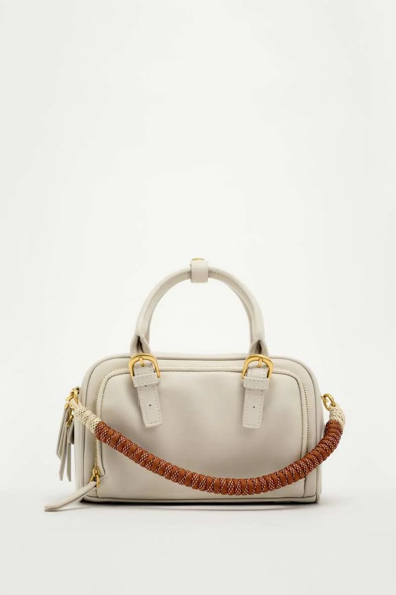 El bolso bowling con asa de cuerda de Zara es el epítome de la elegancia casual. Con un diseño robusto y un precio accesible de 9,99 euros, este bolso combina funcionalidad con un estilo atemporal. Su estructura espaciosa es ideal para esos días en los que necesitas llevar contigo más que lo esencial, desde un picnic en el parque hasta una tarde de compras.