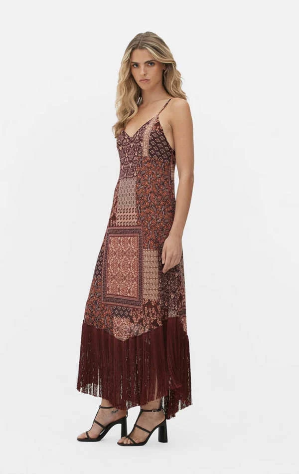El estilo bohemio ha sido un pilar en la moda veraniega, y los flecos encajan perfectamente en este estético relajado y libre. Los vestidos boho chic con flecos suelen incluir estampados étnicos, tejidos naturales y cortes fluidos. Son ideales para festivales de música, días de playa o cualquier evento al aire libre donde quieras lucir desenfadada pero con estilo.