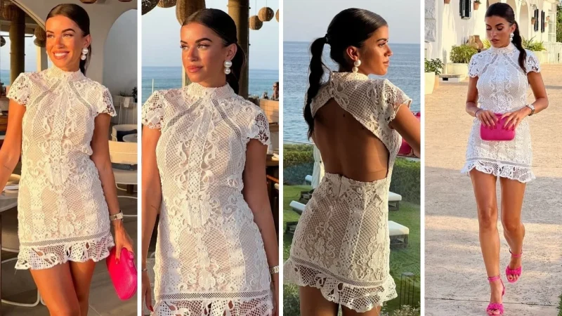 Para completar su look, Rocío combina este vestido con un bolso elegante que añade un toque chic a su atuendo. Además, lleva tacones altos que estilizan su figura y alargan sus piernas bronceadas y aportan un toque de glamour. El detalle final que hace destacar aún más su completo outfit son sus uñas largas en un vibrante color rosa chillón, añadiendo un toque de color y modernidad. Lo bueno es que en Zara podés encontrar dos opciones similares al de la influencer que te van a enamorar.