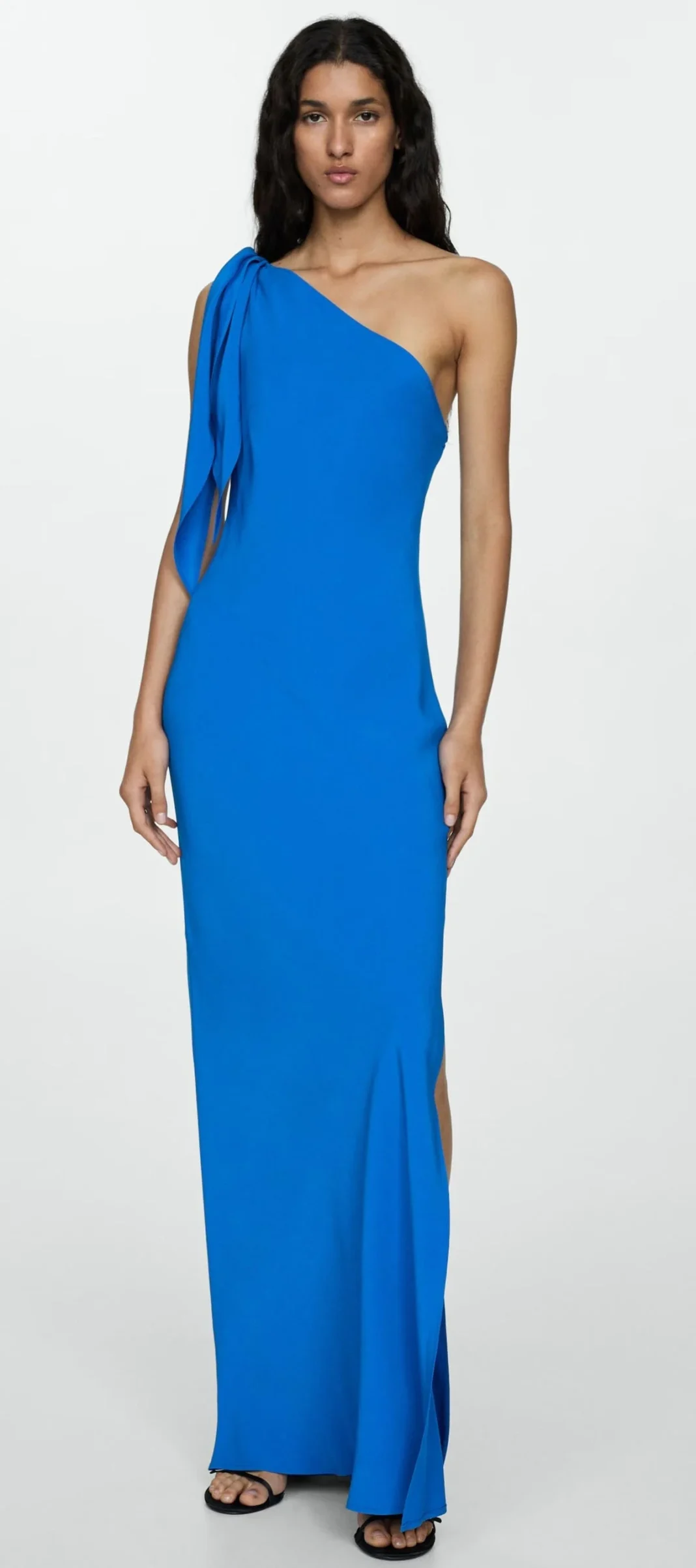 El vestido asimétrico azul de Mango es una prenda que fácilmente se adapta a diferentes escenarios gracias a su diseño elegante y moderno. Su escote asimétrico y su corte entallado lo hacen ideal para una cena elegante. Completa el look con unos tacones altos y joyería minimalista para un resultado sofisticado. Su tejido fluido es perfecto para una fiesta junto al mar. Combínalo con sandalias planas y un sombrero de ala ancha para un estilo chic y relajado. Añade una chaqueta ligera y unos zapatos de tacón moderado para un look profesional pero estilizado, perfecto para eventos de trabajo.