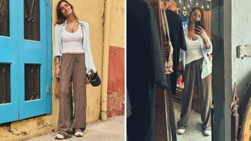 En esta ocasión, Sara Carbonero optó por un pantalón fluido de tiro medio, combinado con una blusa básica y zapatillas básicas estilo Converse. El pantalón, una pieza clave de su outfit, destaca por su comodidad y versatilidad, convirtiéndolo en una elección perfecta para cualquier momento del día. Este estilo relajado y elegante ha ganado popularidad entre quienes buscan un look fresco pero con un toque de sofisticación.