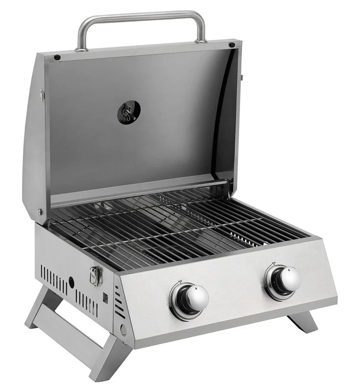 La barbacoa Tepro, diseñada para quienes buscan comodidad y eficacia, se destaca por su diseño compacto y moderno. Su parrilla de acero inoxidable, de 47 x 35 cm, es ideal para cocinar varios tipos de alimentos simultáneamente. Desde jugosas carnes hasta verduras frescas, esta barbacoa ofrece una superficie de cocción generosa que se adapta a cualquier menú. El encendido es sencillo gracias a un sistema piezoeléctrico y una potencia total de 6 kW, repartida entre dos quemadores. Las placas de distribución de llama de acero inoxidable aseguran una distribución uniforme del calor, lo que permite ajustes precisos mediante sus dos controles giratorios.