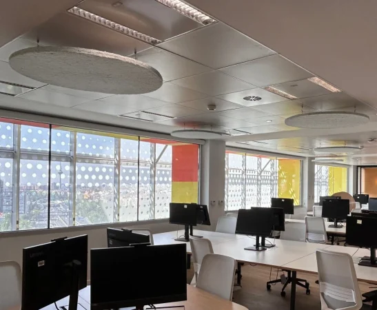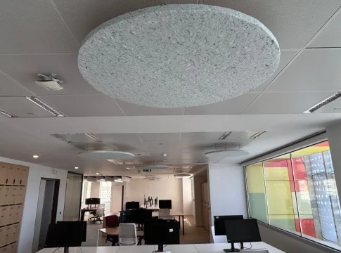 Este material se caracteriza por su sencilla instalación, sin necesidad de obras, ya sea fijado o suspendido. Además, su manipulación es simple, lo que permite un corte preciso con cúter y ofrece una gran versatilidad para adaptarse a diferentes entornos.
