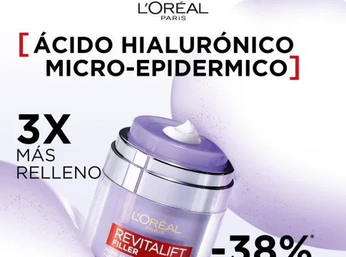 El nuevo gel en Crema Rellenador de Ácido Hialurónico con 3 ceramidas de L’Oréal París Revitalift Filler que vemos en Amazon rellena intensamente las líneas y arrugas, refuerza la barrera cutánea de la piel y sella la hidratación para lograr una piel visiblemente revitalizada y suave.