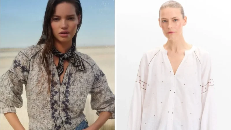 Por otro lado, la blusa bordada de slowlove y la blusa bordado floral también están disponibles en Cortefiel, cada una a 49,99€. La primera, con borlas decorativas y un toque boho juvenil, es ideal para crear estilismos dulces y bohemios, especialmente cuando se combina con botas cowboy. Ambas prendas florales son sencillas y elegantes, es perfecta para un look fresco y elegante con complementos que en las redes sociales se vuelven tendencia.