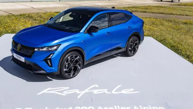 El Rafale E-Tech 4×4 300 CV se apoya en la mecánica híbrida E-Tech del grupo Renault, que en este caso cuenta con un nuevo turbocompresor que eleva la potencia a 110 kW (150 CV) y el par a 230 nanómetros. Además, el vehículo está equipado con tres motores eléctricos acoplados al motor de combustión, lo que le proporciona una potencia máxima combinada de 300 CV.