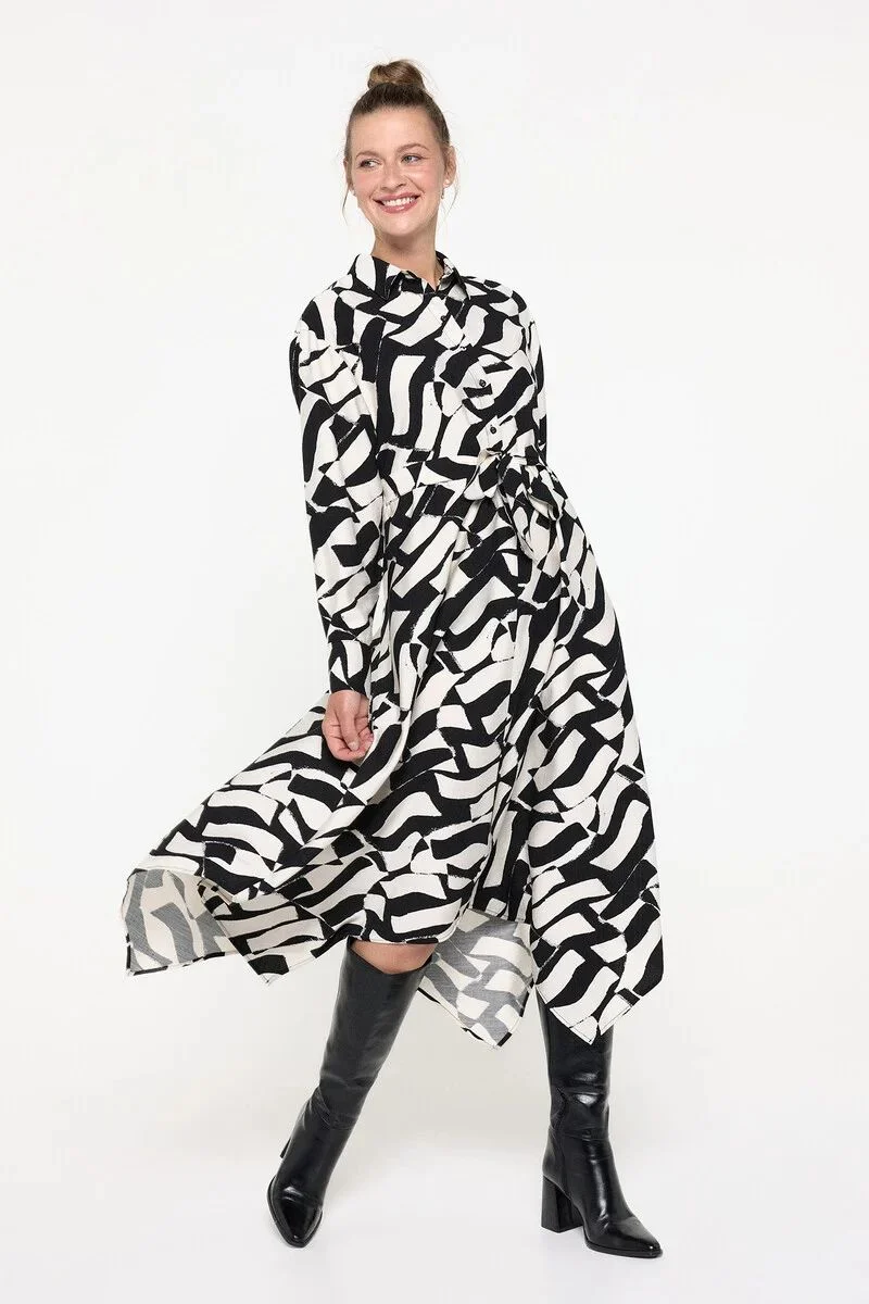 2Vestido midi camisero y bajo asimétrico