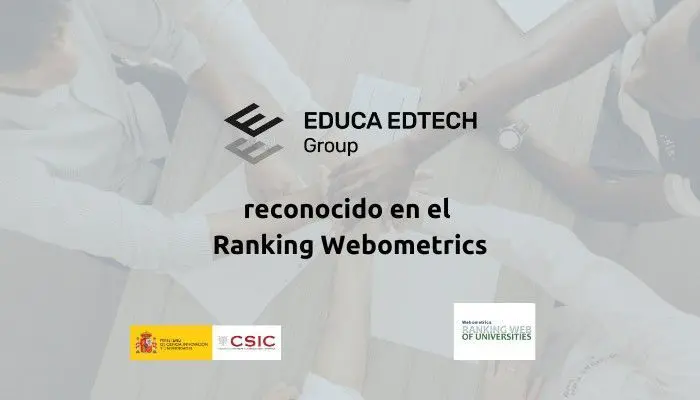 Las instituciones educativas del grupo tecnológico, líder en formación online, han sido reconocidas en el Ranking Webometrics 2024, iniciativa del Cybermetrics Lab, grupo de investigación impulsado por el Consejo Superior de Investigaciones Científicas (CSIC). Este se determina como el mayor organismo público de investigación de España y una de las primeras organizaciones de investigación de Europa.