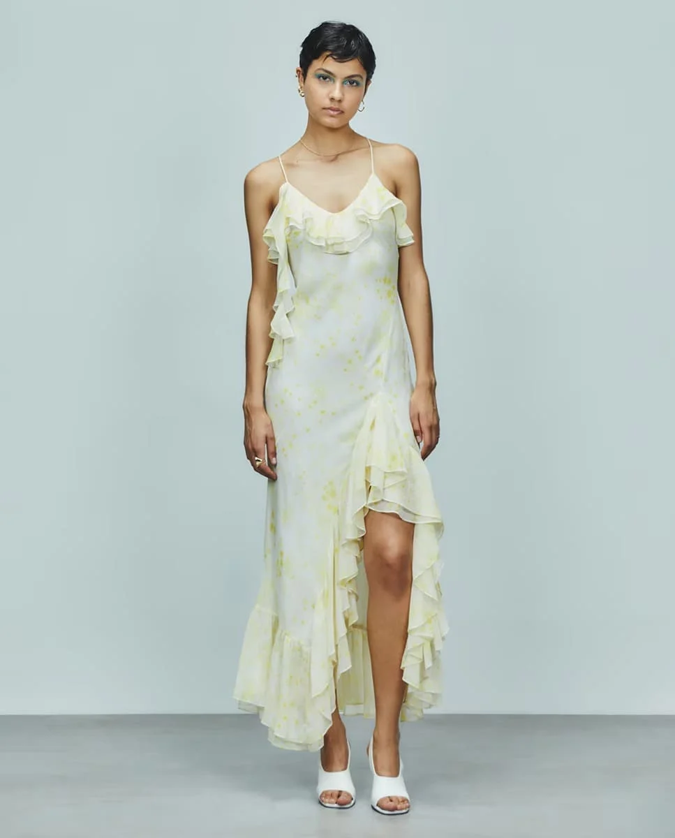 Para las más atrevidas, Sfera también propone opciones vibrantes, como el vestido amarillo de tirantes con volantes. Este diseño, fresco y lleno de vida, es ideal para aquellas que no temen destacar. Su color brillante y su estilo con volantes aportan movimiento y dinamismo, haciéndolo perfecto para cualquier evento diurno o una fiesta en la playa. Además, su espalda descubierta añade un aire juvenil y desenfadado, haciéndolo una pieza clave para los días más calurosos del año.