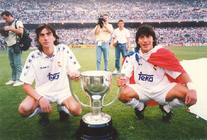 La campaña 94-95 tuvo una dupla inesperada que fue oro puro para el Real Madrid. No tenía tanto brillo como la ‘sociedad’ que formaron Michel y ‘el Buitre’, pero si fue suficiente para que el Real Madrid ganara muchos enteros para llevarse la liga después de cuatro temporadas a la sombra del Dream Team de Johan Cruyff. La pareja en cuestión la formaron dos jugadores que, a priori, no estaban llamando a ser titulares en el cuadro que entrenaba Jorge Valdano: Emilio Amavisca e Iván Zamorano. Teka patrocinaba entonces al Real Madrid.
