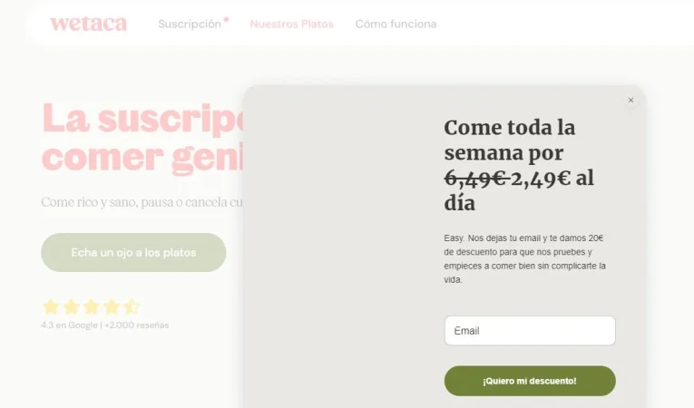 Centrándonos en el modelo de negocio de Wetaca, los consumidores pueden elegir lo que les apetezca comer desde 6,49 euros. Lo positivo es que no hay menús cerrados y es el propio cliente quien elige su menú semanal casero, sin fritos, sin aditivos, y sin conservantes. La propia compañía se encarga de enviar la comida a la dirección del cliente y al día y hora que le venga bien.