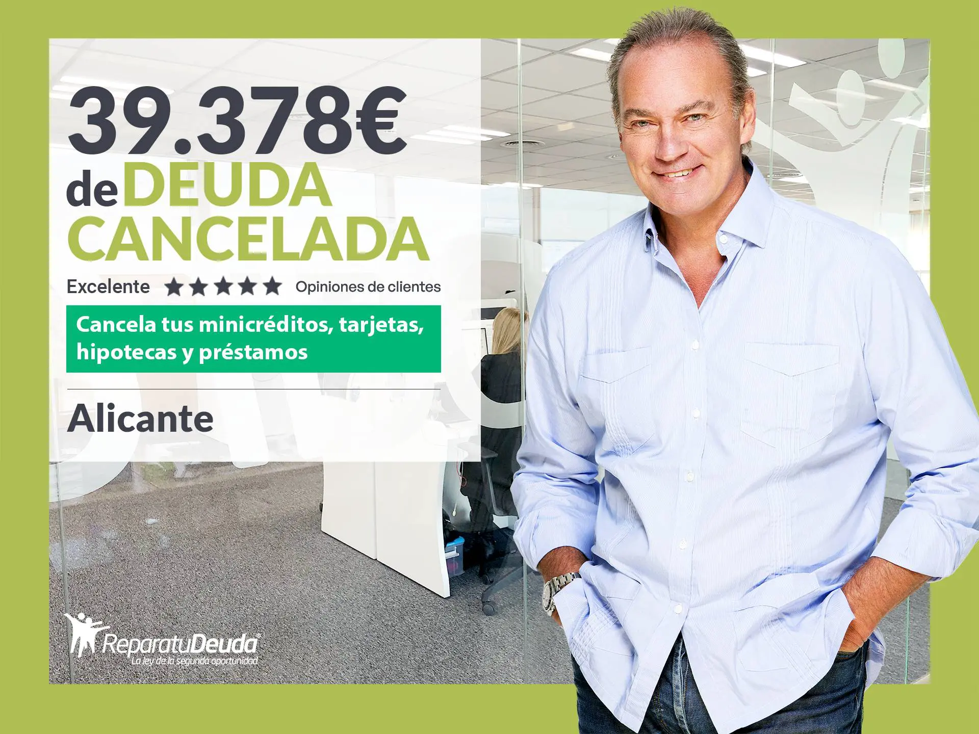 Repara tu Deuda, despacho de abogados líder en España en la Ley de Segunda Oportunidad, ha logrado cancelar una deuda que ascendía a 39.378 euros en Alicante (Comunidad Valenciana) aplicando la Ley de Segunda Oportunidad.
