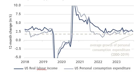 Sin embargo, mientras los beneficios de las compañías se mantengan sólidos, el riesgo de que se produzcan despidos importantes es limitado. Esto significa que el riesgo de recesión sigue siendo bajo y nuestro escenario de base sigue contemplando un aterrizaje suave de la economía estadounidense.