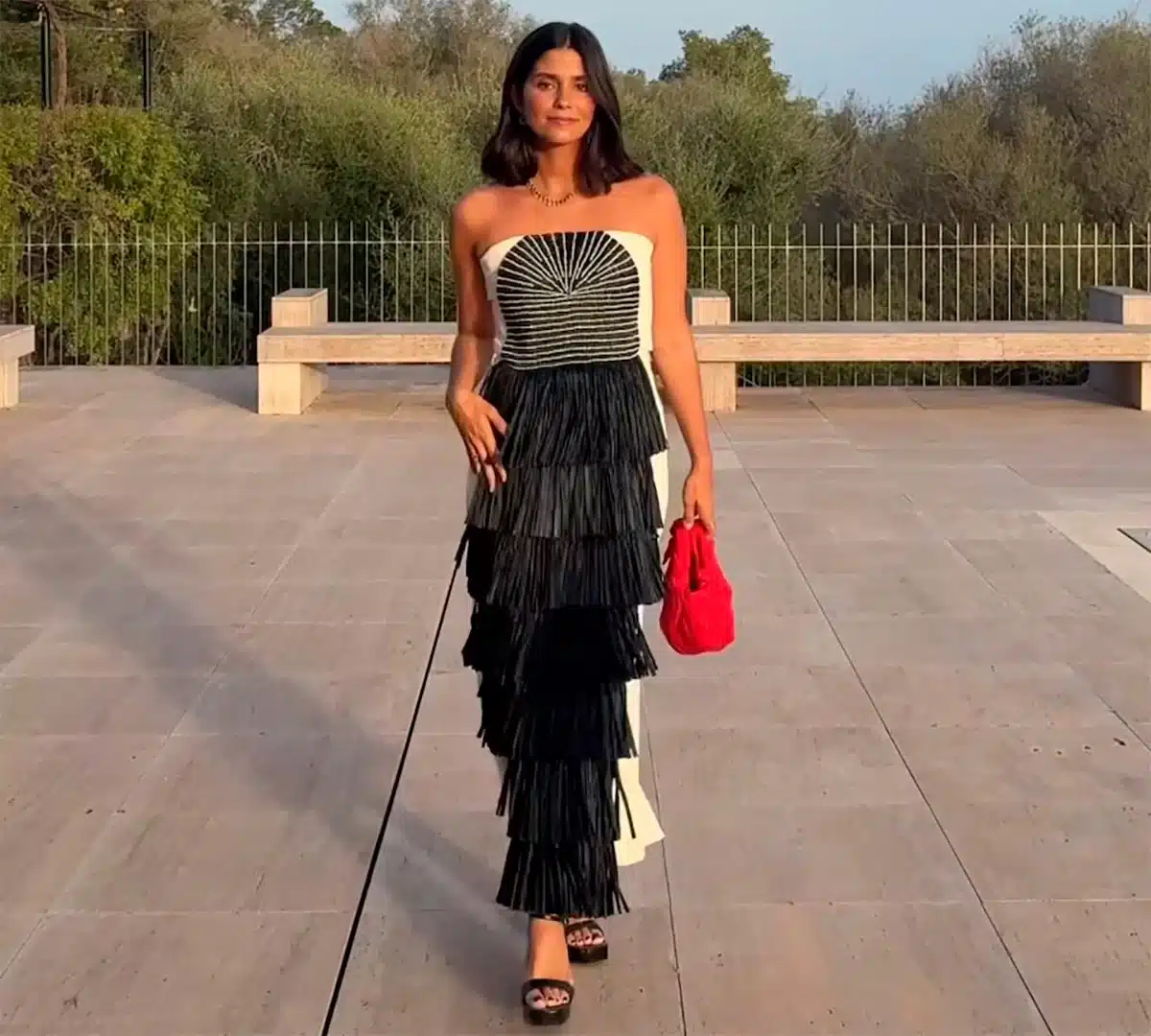 La creadora de contenido María García de Jaime se lució por ser una de las invitadas más elegantes. Acudió con una obra de la diseñadora colombiana Johanna Ortiz, quien también vistió a María Pombo para la ocasión: un diseño en blanco y negro con escote y falda escalonada que estilizaban su cuerpo y la hicieron quedar como la más destacada del grupo.