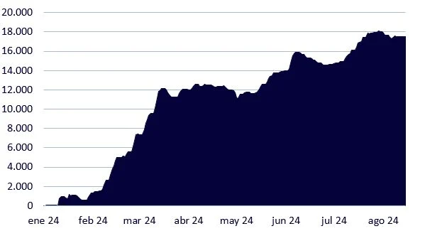 Fuente: Bloomberg. Datos a 15 de agosto de 2024. No se puede invertir directamente en un índice. La rentabilidad histórica no es indicativa de la rentabilidad a futuro y cualquier inversión puede perder valor.