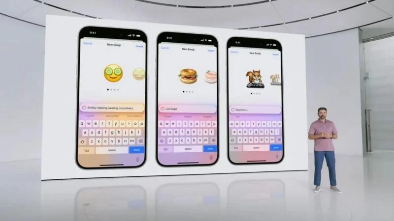 Apple no se ha molestado en realizar una explicación más compleja de lo que debería sobre Genmoji. Básicamente, la compañía ha dicho que esta nueva función será compatible con algunas aplicaciones y que solo con tocar la tecla de los emoticonos, escribir la descripción del emoji que se quiere generar y darle a «Crear nuevo emoji», será posible obtener los emoticones más personalizados que se puedan imaginar.