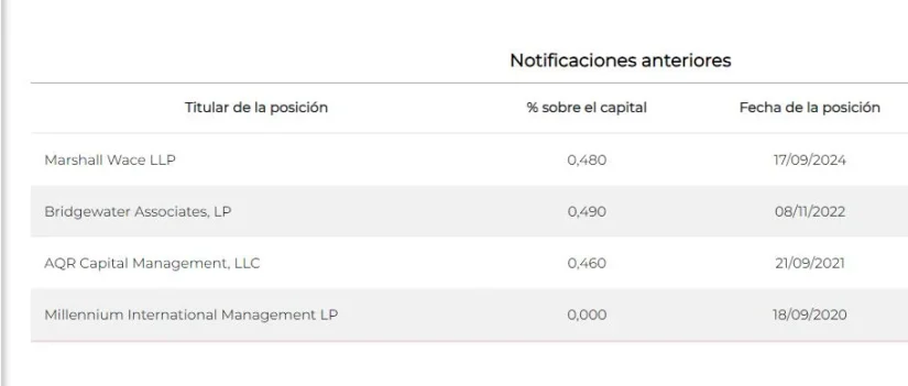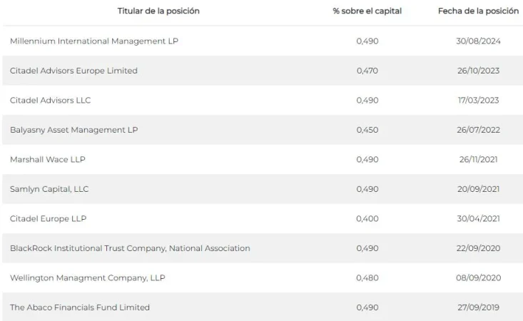 Marshall Wace LLP tenía en posiciones bajistas el 0,48% de BBVA a fecha 17 de septiembre, pero ya no aparece en los datos que facilita la Comisión Nacional del Mercado de Valores (CNMV) sobre posiciones cortas, lo cual quiere decir que ha deshecho las mismas. Lo que ha pasado es que ha vendido en vistas de que la apuesta, según estima, ya no le era propicia.