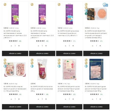 Por otro lado, no solo se ha esforzado en contar con una amplia gama de productos, sino que en algunos de sus establecimientos les ha aplicado un ‘lavado de cara’ dejando una serie de secciones juntas con una gran cantidad de productos. Sin ir más lejos, los consumidores intolerantes a la lactosa pueden observar como en los establecimientos de El Corte Inglés cuentan con dos lineales con un cartel arriba donde se especifica que esos productos son sin lactosa.