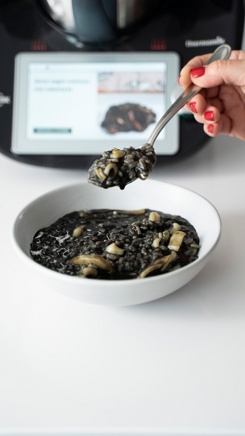 Imagina un plato humeante de arroz negro, perfectamente cocido, que se mezcla con tiernos calamares y una variedad de verduras coloridas. Cada bocado es una explosión de sabor, donde la suavidad del arroz se encuentra con la textura de los mariscos y el crujido de las verduras frescas. Además, este plato no solo es delicioso, sino que también está lleno de nutrientes, convirtiéndolo en una opción ideal para quienes buscan una comida equilibrada y sabrosa.