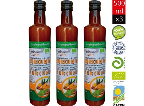 La curcumina líquida orgánica triple fermentada con Fruta del monje y Kombucha, es un producto 100% natural, elaborado a base de té de Kombucha (fermentación con hongo kombucha), cúrcumina orgánica (extracto de Curcuma Longa, 95% curcuminoides), fruta de monje orgánico y un 65 % de Mogrosive V, un edulcorante natural que le añade el toque agradable a la bebida.