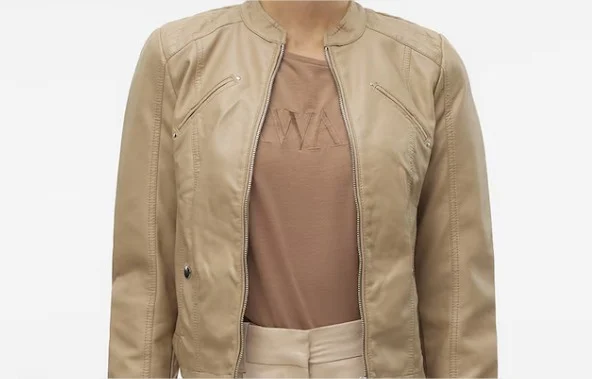 Esta cazadora de polipiel con cuello perkin es la opción perfecta para darle un toque moderno y sofisticado a tu look otoñal. Su diseño en un tono crudo se adapta a diferentes combinaciones, desde un estilo casual con jeans hasta un look más formal con vestidos. Además, el acabado en polipiel aporta un toque de elegancia, mientras que el cuello perkin le otorga un aire distintivo.