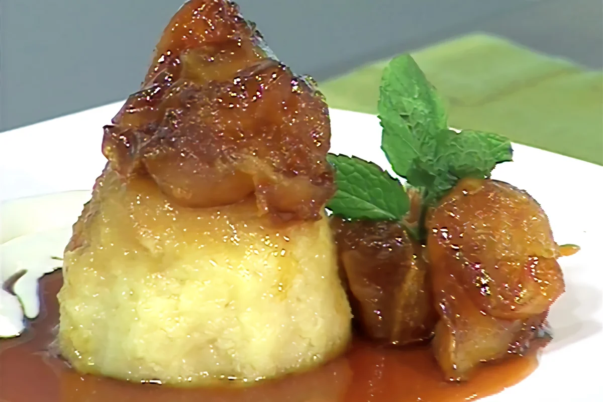 Para desmoldar, pasa un cuchillo por los bordes del flan y colócalo en un plato grande. El caramelo se derramará sobre el flan, creando una presentación atractiva. ¡Y listo! Ahora puedes disfrutar de un delicioso flan de manzana sin horno, perfecto para cualquier ocasión.