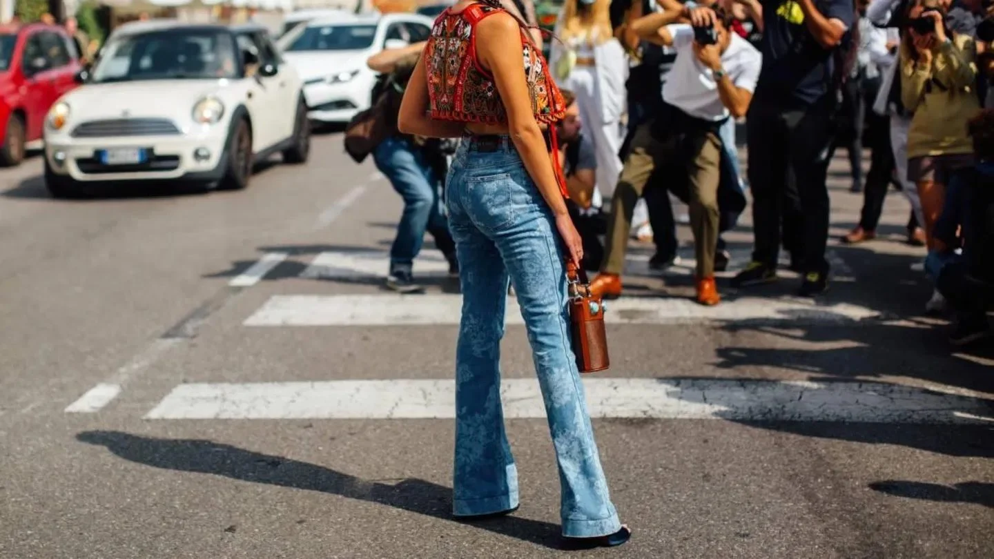 Vaqueros flare: con un diseño ajustado hasta la rodilla y sutilmente acampanados, estos pantalones expresan una sensación retro por medio de su elegancia, lo que los convierte en una prenda ideal para combinar con un buen calzado de tacón.