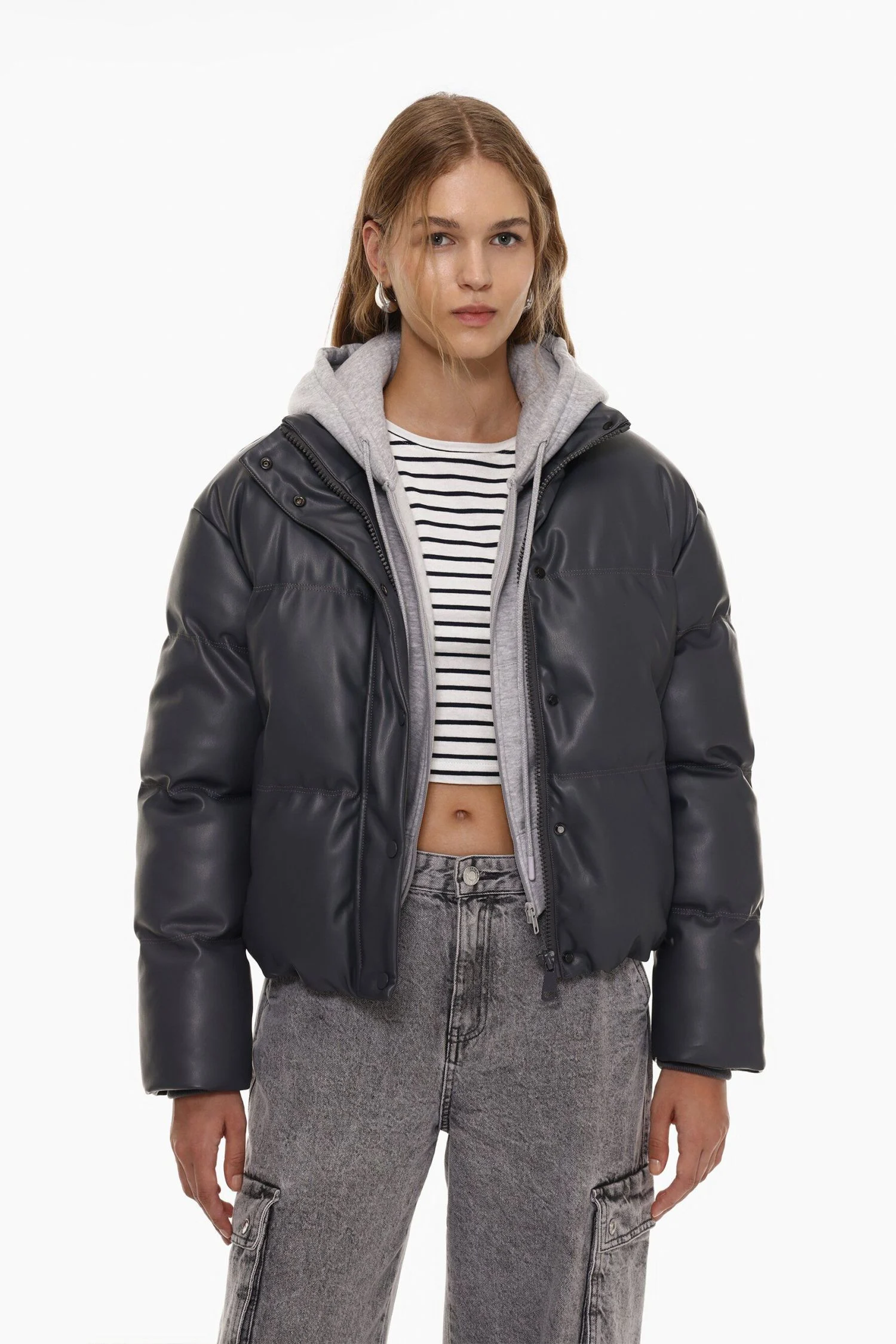 La cazadora acolchada efecto piel de Lefties es una opción asequible y moderna para enfrentar los días fríos con estilo. Esta pieza, con un cuello subido que aporta protección adicional contra el viento, destaca por su diseño contemporáneo de manga larga y su acabado en efecto piel, lo que le confiere una apariencia sofisticada.