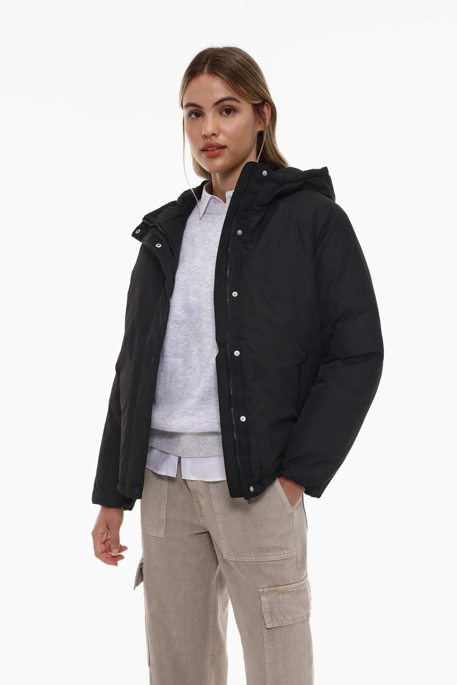 Esta cazadora acolchada es una opción perfecta para quienes buscan una prenda ligera pero abrigada, ideal para combinar con outfits casuales de invierno. Su diseño básico permite que sea fácil de combinar con diferentes estilos, convirtiéndola en una pieza imprescindible para el armario.