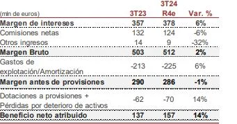 «Aunque el foco del mercado continuará estando en el margen de intereses, no hay que perder de vista que el trimestre seguirá mostrando un margen bruto sólido (un 10% más año contra año, según la estimación para los nueve primeros meses de 2024) y un 12% más año contra año sólo negocio España), en un escenario donde los gastos de explotación crecerán a un ritmo más moderado y el coste de riesgo continuará controlado», termina Renta 4.