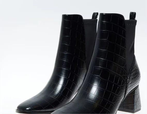 Los botines medios croco son perfectos para dar ese toque sofisticado y moderno a cualquier look otoñal. Fabricados en materiales de alta calidad y con un elegante acabado en imitación de piel de cocodrilo, estos botines en color negro ofrecen el equilibrio perfecto entre estilo y confort. Con un tacón de altura media, son ideales para usar durante todo el día sin sacrificar comodidad.