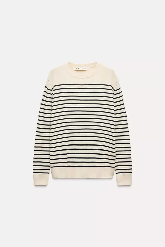 Si tienes unos vaqueros oscuros y quieres construir un look al más puro estilo marinero, sin duda alguna un jersey de rayas es la mejor opción. Además, este tipo de prendas también se caracterizan por añadirle un toque coquette a quien las lleva puestas, así que si tu rollo va más por este lado, esta es la alternativa perfecta para ti. Está disponible en Zara por 22,95€ (referencia: 3433/101).