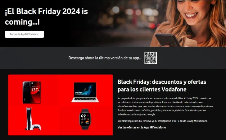 Para acceder a las ofertas de Vodafone España también tiene que ser clientes de la operadora, porque solo mediante el acceso a su app se pueden conseguir los descuentos en dispositivos que la operadora roja llama «nuestros planes para el Black Friday 2024».