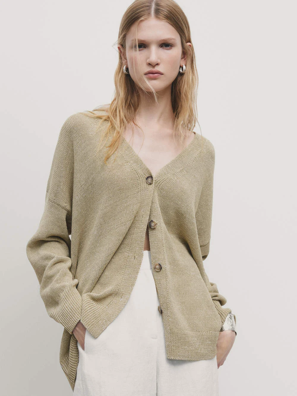 Para más versatilidad, también tienes la opción de añadir este cárdigan de color claro básico caído disponible en Massimo Dutti a tu armario, pues resulta ideal para llevarlo con vestidos y pantalones pensando en cualquier ocasión. Este en particular está hecho con algodón y viene en color verde claro.