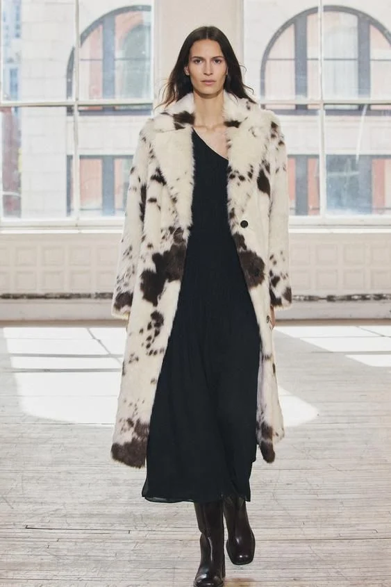 Dale la bienvenida a la temporada de frío con estilo gracias al abrigo efecto pelo estampado animal de la ZW Collection de Zara, disponible por 149,00 EUR. Este abrigo largo, con su llamativo diseño de estampado animal, no solo te mantendrá abrigada, sino que también te hará destacar en cualquier ocasión. Su cuello solapa de muescas y manga larga aportan un toque de sofisticación que es perfecto para los días más frescos.