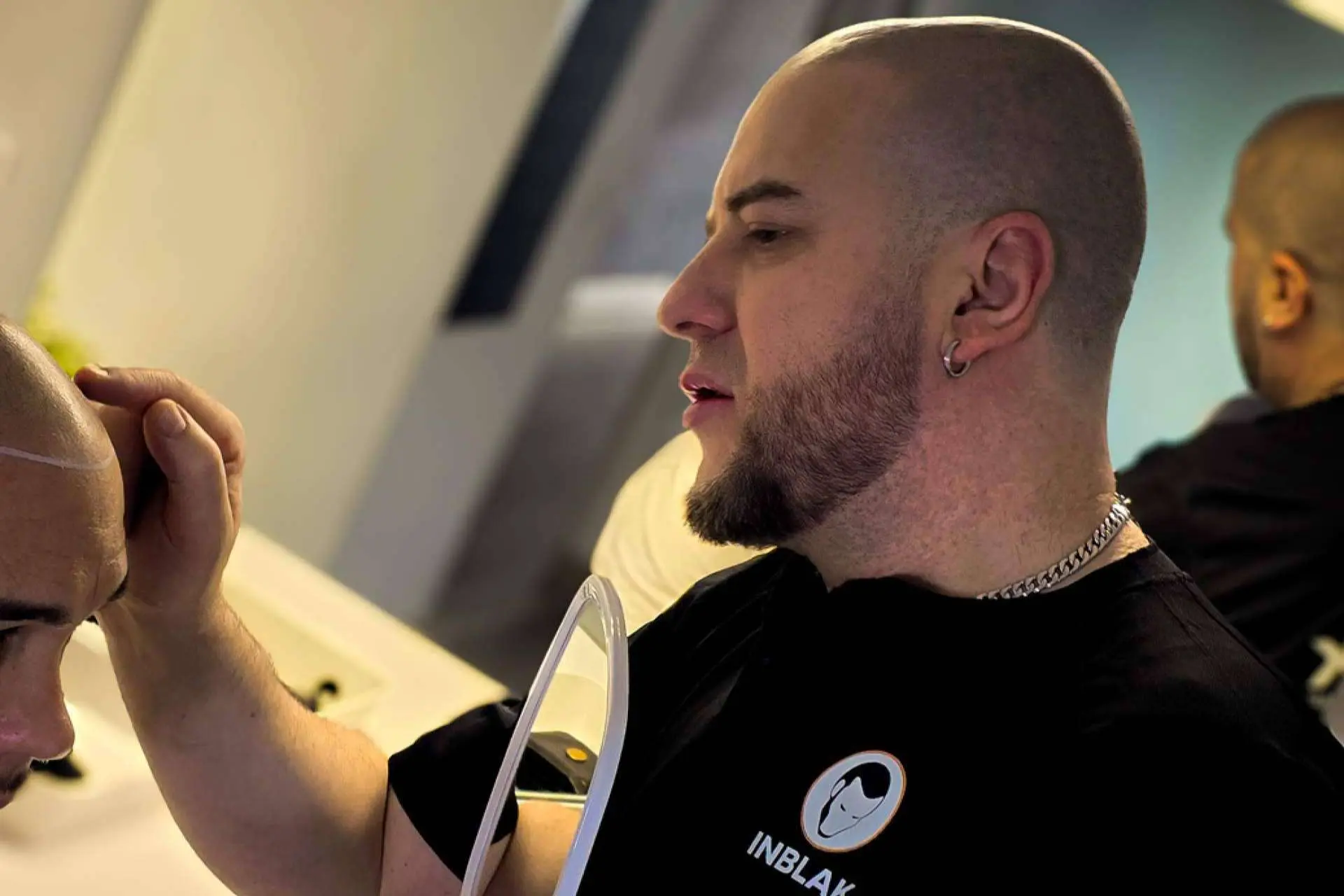 Como él mismo afirma: «Cada piel es única y requiere un tratamiento personalizado. No se trata solo de imitar el pelo rapado, sino de recrear la tonalidad del cuero cabelludo de forma natural y armoniosa». De esta manera, cada tratamiento que se realiza en INBLAK es como una obra de arte personalizada, diseñada para satisfacer las necesidades y expectativas de cada cliente.