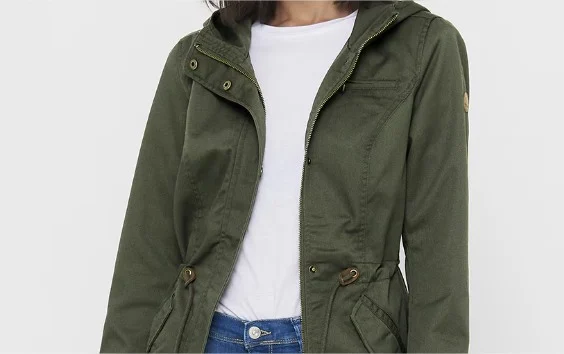 Parka de mujer con capucha y cintura fruncida