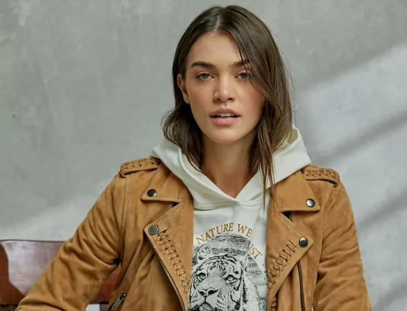Chaqueta tipo biker: detalles como tachuelas, cremalleras visibles y efectos envejecidos conforman la línea renovada de este tipo de chaqueta. En este caso, el negro sigue siendo el color por excelencia, aunque también podemos verla en tonos tierra y gris para apuestas más suaves.